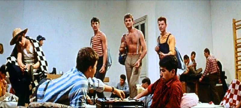 The Chairman of JZD is in charge of the whole scene and his presence is felt as a stress by most of the kids. (JZD stands for Jednotné zemědělské družstvo, which was the collective agricultural cooperative, the usual name of the agricultural cooperatives in former socialist Czechoslovakia.)