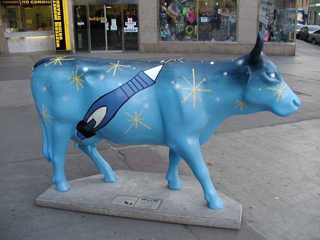 In 1999, there was a cow parade in Chicago, organized by businessman Peter Hanig, along with Commissioner of Cultural Affairs Lois Weisberg. The American company that explored this idea, CowHolding Parade, was founded in 1999; the Swiss company promptly sued but the case fizzled out without results. A bronze casting of one of the cows is on permanent display in Chicago in commemoration of the city’s initial exhibition.
