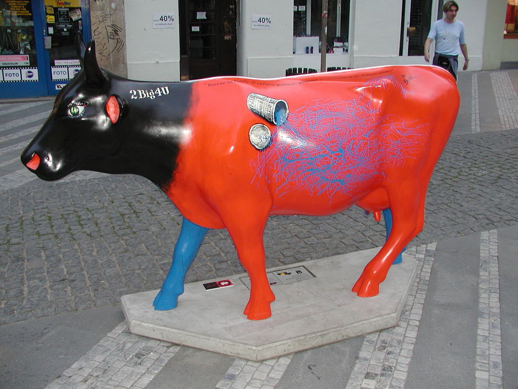 “I am not only concerned about vandalism against our cows, I am concerned about vandalism in general. My personal feeling is that most of vandalism in Prague can be attributed to foreign hooligans. My question is: Why do they come to Prague? And, when is the city going to start to take action against them?” – Serge Borenstein, co-owner of the CowParade Prague 2004