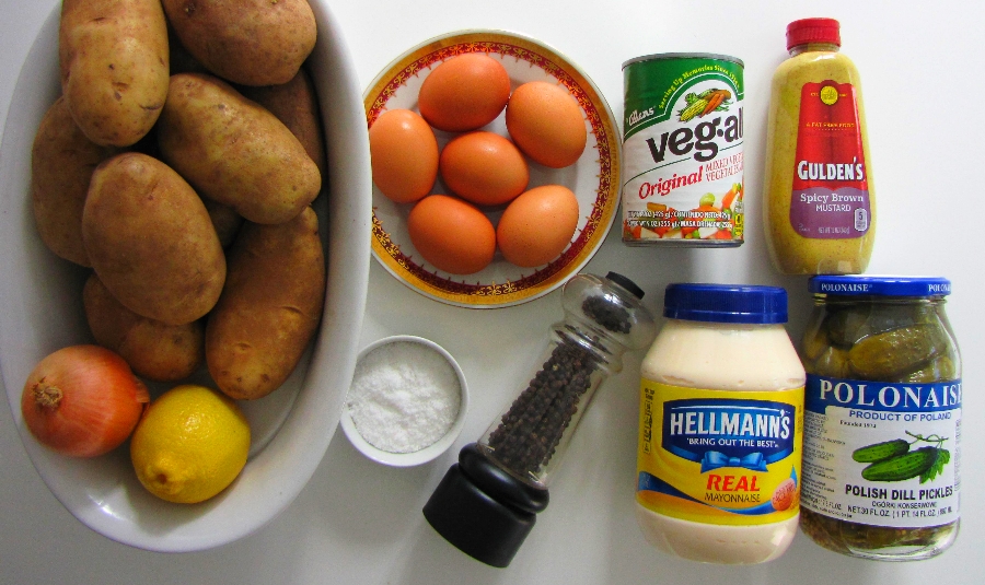I recall her making this in small batches for dinner, and much larger batches for huge parties centering around picnics at Fort DeSoto Park on Florida’s Gulf Coast where for 20+ years Czechs from all over the world gathered to enjoy good company, great food and fun in the sun. The biggest batch was for my sister’s wedding where we must have boiled, peeled and lovingly assembled over 100 pounds of potatoes and the other ingredients that go into this Czech classic.