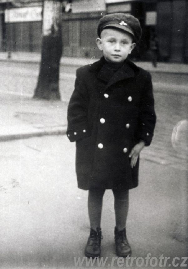 I love how the little boys are wearing overcoats and vests, complete with ties.