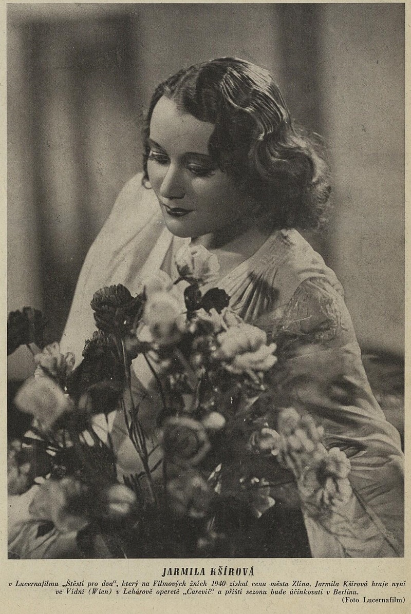 Miroslav Cikan then cast Jarmila Kšírová as Soni Jansová in the comedy Stestí pro dva (Happiness for Two, 1940). In these shots she also applied her singing skills. Sadly for the Czechs, Stestí pro dva was her last opus in Czech film.