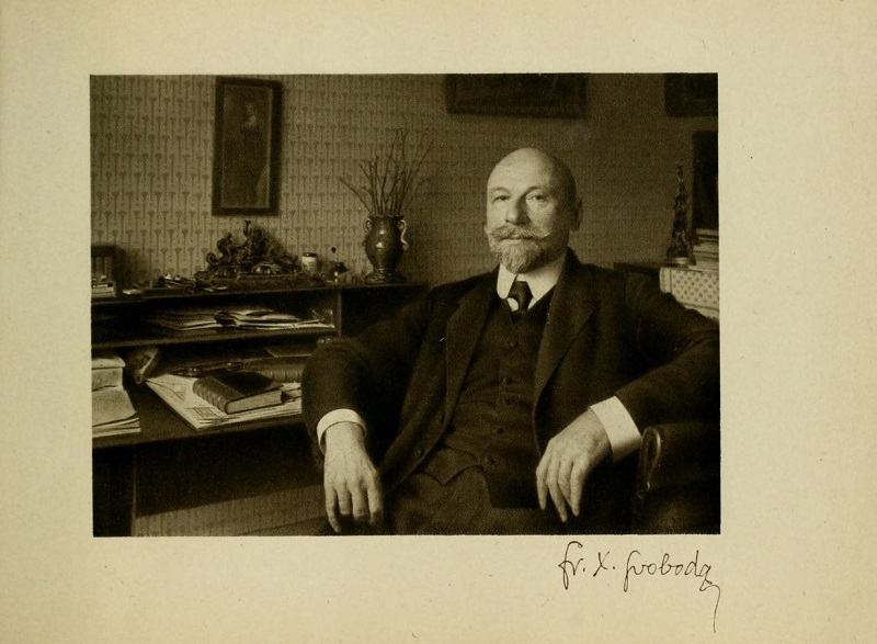 František Xaver Svoboda (25 October, 1860 – 25 May, 1943) was a Czech poet, playwright and writer, author of extensive poetry, prose and drama. Literary work began with poetry as the epigon of Jaroslav Vrchlický, later he formed an impressionist lyric with meditative and memory positions. The rhythm of his excitement came from: Rozkvět (1898) and Řeka (1908-1909). Rozkvět is partly autobiographical, it tells of the spiritual rise of the family of the Sudeten family in the next generation. The theme of the Řeka chronicle is the search for ethical norms for the relationship between man and woman in the bourgeois family, the decisive force is the purity of the woman’s love, the regenerative power on man’s soul has the effect of nature. He was also a dramatist, a critically realistic and naturalistic drama, in his plays he pursued a disability of a human character determined by the environment – for sxample Směry života and Rozklad. He also wrote cheerful plays which hold up to the test of time: Směry života and Rozklad.