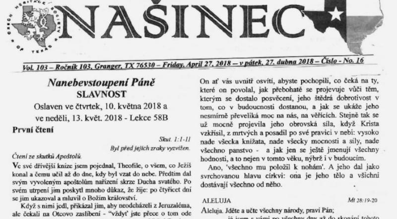 We are sharing this reprint of Ken’s article here to bring awareness to this subject and in hopes that Joe Vrabel will find someone who will take over the Našinec and continue the work to keep Czech language alive. While his article reached the eole of Texas, it is our hoe that our sharing will reach others who may not have seen the American-Statesman story.