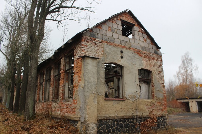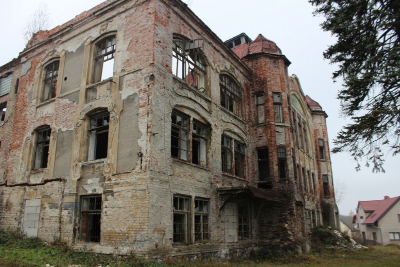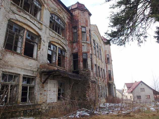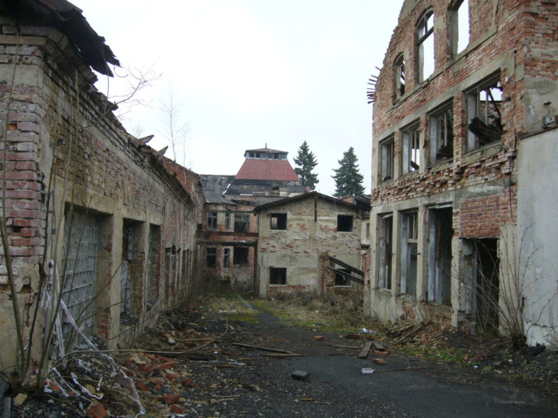 This once prominent feature of the town, possibly designed by Leo Kammel who was a Šenov native and a well-known project architect in Vienna, has shattered windows, a roof requiring a substantial reparation and heavily damaged stucco decorations, most of which have fallen off already.