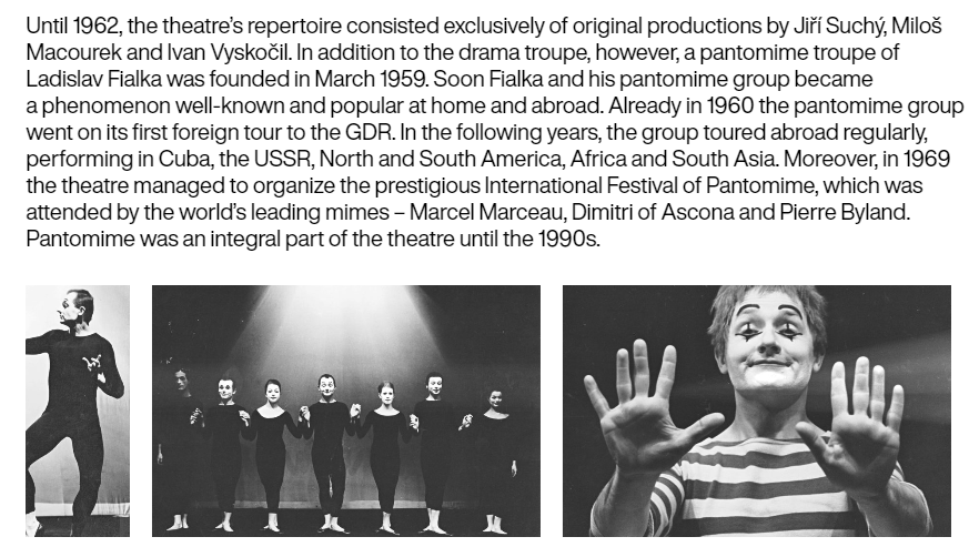 In 1958, the renowned mime artist Ladislav Fialka founded one of the most celebrated pantomime ensembles in the Czech Republic. Over the course of 32 years, this ensemble achieved remarkable acclaim, staging 13 original productions that captivated audiences in more than 52 countries. Their performances represented a pinnacle in the history of pantomime, embodying what is now known as the “Czech School” of this art form.