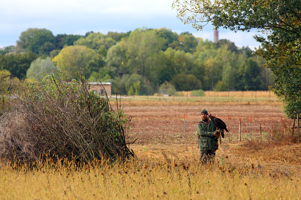 When the bird captures the game, it proudly sits on the prey and waits for the falconer. The biggest reward is when it can eat directly from the prey.
