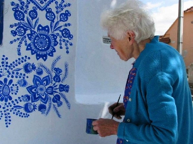 A Czech granny who is 91 years old is taking to the streets and creating unique works of art on the houses of her friends and the local church.